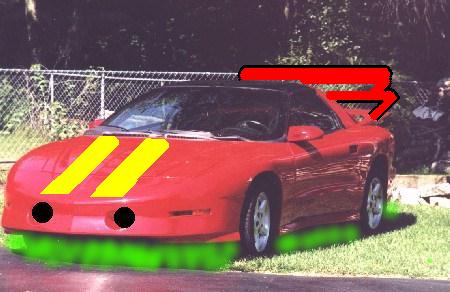 Aftermarket Upgrades/Mods(Click on underlined items for more info.) Borla 3" stainless steel catbckDMH Electric Borla ValveFLP 1.75" longtube headers with dual 3" catsK&N FIPK 3.73 General Motive posi traction gear set 3200 stall 9" Vigilante Torque Converter Ed Wright reprogram 160 degree thermostat Mobil 1 Tri-synthetic Oil Dunlop Sport 5000 tires custom interior red lighting Side and Rear decal inserts by THE SIGN CONNECTION AC Delco Platinum +3 plugs Accel Extreme 9000 plug wires